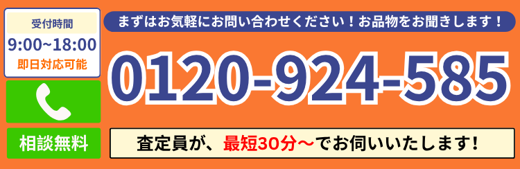 お電話するだけで即日専門知識を持ったベテランスタッフがお伺いさせていただくので、迅速かつ正確な査定が可能です。